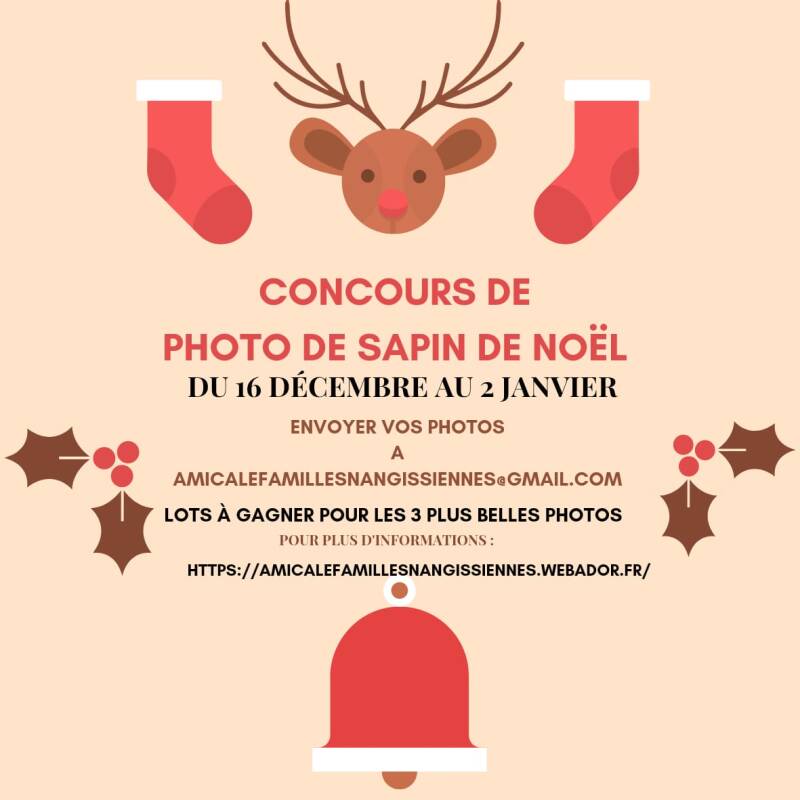 L'Amicale des familles nangissiennes organise un concours de Noël à destination des familles de Nangis. Ce concours, gratuit et sans obligation d’achat, a pour vocation de mobiliser les familles autour d’un évènement ludique et festif à quelques jours de Noël. La participation au concours est ouverte à toutes les familles qui ont participé au goûter de Noël au sein des écoles maternelles et primaires Noas et Rossignots.